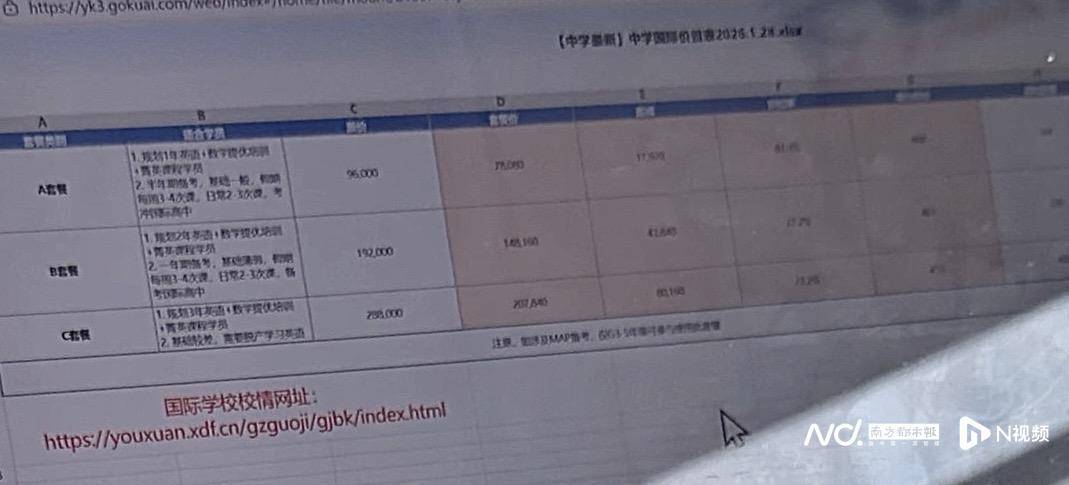 此外,南都N视频记者走访了解到,新东方同样提供初高中国际教育类的培训,中学阶段国际教育升学、备考课程包价格从7万元至20余万元不等。