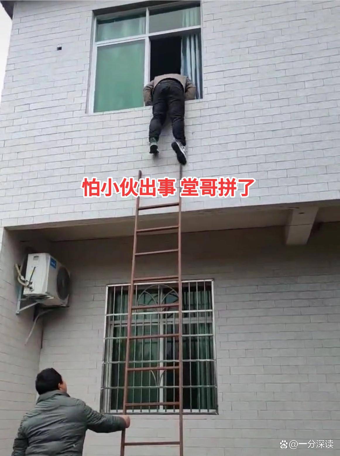 但梯子年久失修,大堂哥刚踮脚翻窗,脚下的梯子竟然断了,那一截钢管瞬间落地,砰地一响,让人心惊胆战。