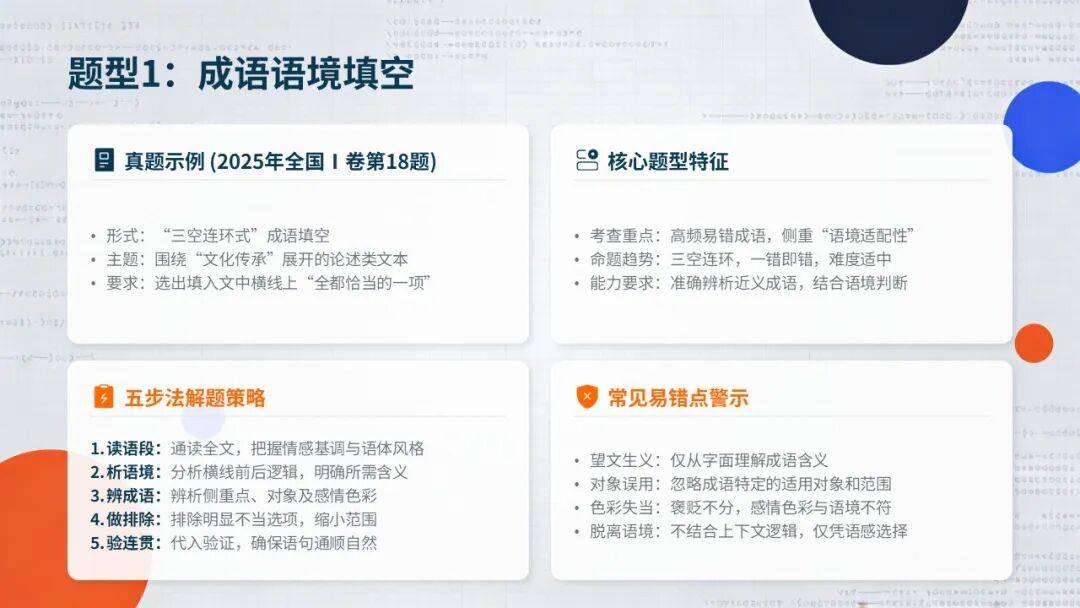 7. 创新题型(2025年新增错别字改正、成语用法演变分析)。