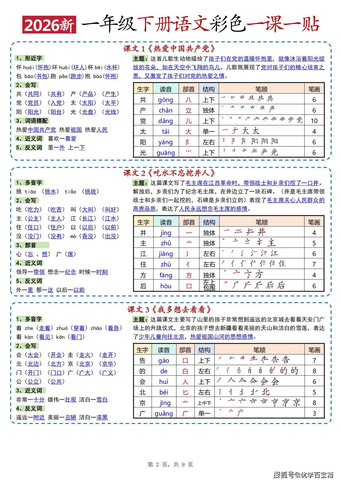 今天为大家分享:2026新版一年级下册语文彩色一课一贴资料,紧扣教材全册课文与识字内容,以 “一课一贴” 的形式系统梳理了核心知识点,是帮助一年级学生夯实语文基础、提升学习效率的实用学习资料。