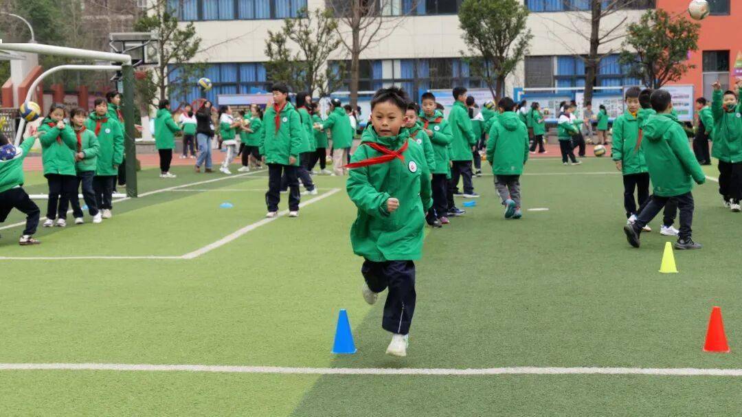 电子科技大学附属实验小学学生开展团体运动。
