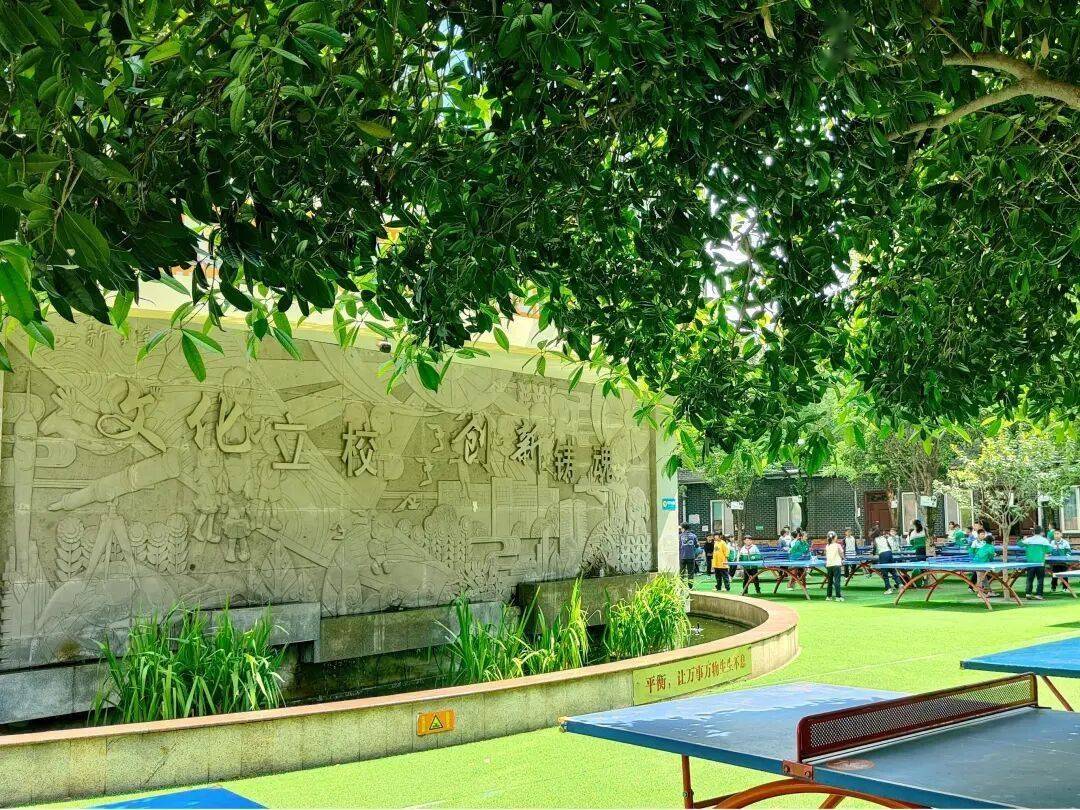 现在,全校有829张乒乓球桌、136个篮球架、36个微型足球场,就在孩子们每天经过的地方。