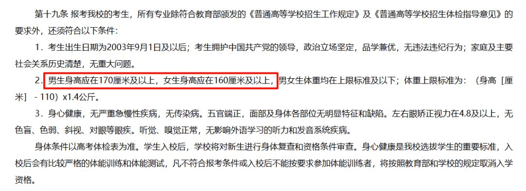 如国际关系学院对考生的条件是:原则上男生身高在170厘米及以上,女生身高在160厘米及以上。