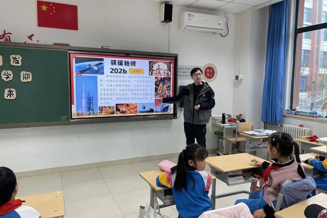 星火小学以“策马扬鞭启新程 童心向党向未来”为主题举行春季开学典礼,将红色教育、“健康第一”理念与开学仪式深度融合,打造生动的思政课堂。校长焦富娟结合中国共产党成立105周年与数字时代背景,围绕“健康第一”对学生提出四点希望,号召学子传承红色基因、勤奋学习、练就强健体魄、涵养美好品德,将个人梦想融入祖国发展。党、团教师代表与少先队员代表同台朗诵《薪火相传 强国有我》,以铿锵的表达诠释红色血脉的延续,传递师生同心向党、勇担强国使命的坚定信念。