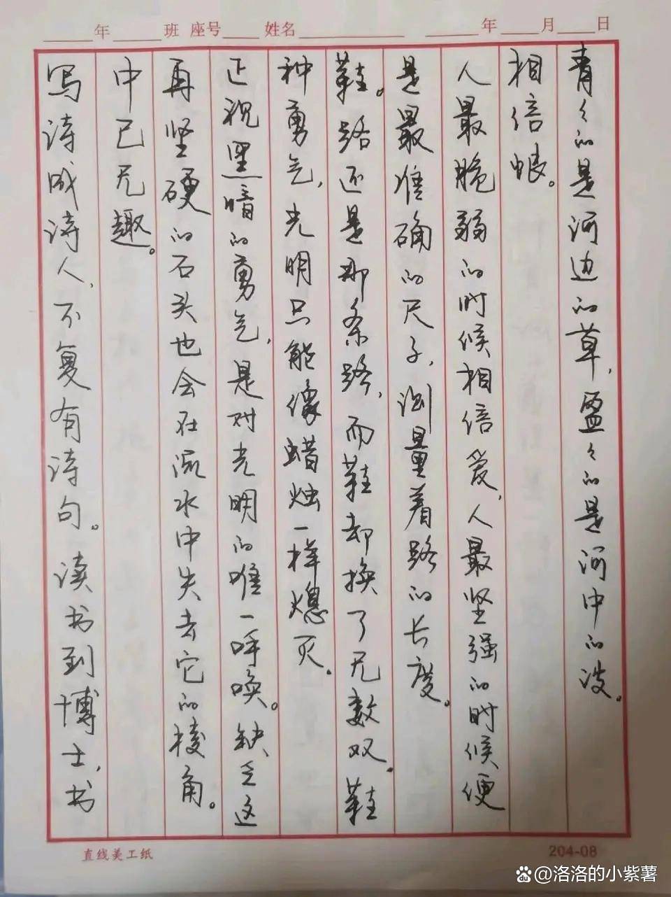 真正聪明的做法,是在保证字迹清楚、结构规范的前提下,适度提升书写速度与整洁度,做到“快而不乱,工而不僵”,此外,书写习惯也反映学习态度。潦草敷衍的字迹,往往暴露粗心与浮躁,而认真书写的每一笔,都是对知识的尊重。