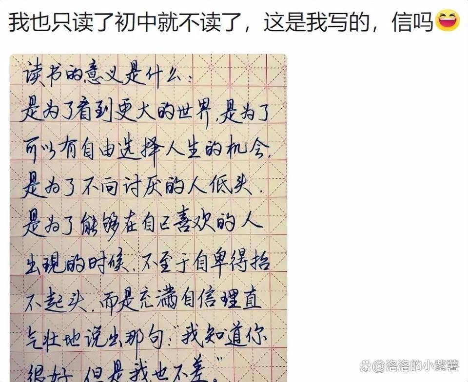 一位仅有初中学历的网友曾在评论区晒出自己漂亮的字迹,却感慨道:“我只读到初中,写这么好看的字又有什么用?”这句话点醒了很多陷入字体焦虑的学生:字的价值不在于是否华丽或“成熟”,而在于能否准确、高效地传递信息。