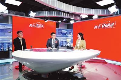 3月9日,全国政协委员、天津大学副校长明东(中),北京师范大学国家高端智库首席专家、教育考试评价能力建设研究中心主任申继亮(左)做客中国教育报刊社“两会访谈录”。本报记者 冯子琪 摄