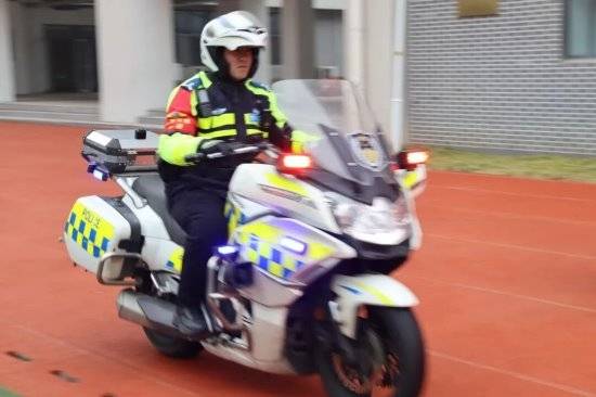 铁骑队员的骑行表演将现场气氛推向高潮,飒爽的英姿引得孩子们欢呼连连。随后,刘媛媛警官结合校园周边交通实际,深入浅出地讲解交通安全知识,并通过情景模拟演示“车辆盲区”“开门杀”等安全隐患。六(1)中队于沐锦同学发出“知危险 会避险,争做文明交通小使者”的倡议,将安全意识深植每位师生心中。