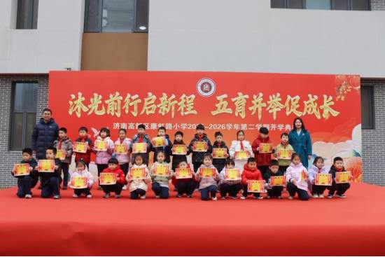 春风送暖,万象更新。3月4日上午,济南高新区康虹路小学2026年春季开学典礼在全体师生的热切期盼中隆重举行。本次典礼以“沐光前行启新程,五育并举促成长”为主题,创新采用“主会场+主题展区”的形式,将传统开学仪式、寒假成果表彰、交通安全教育与科技节展示有机融合,为全体师生呈现了一场别开生面的开学盛宴。济南高新区教育文体部领导、济南市公安局交通管理支队高新区大队领导及宣传民警、铁骑队员、区级督学、校级家委会会长出席本次活动。