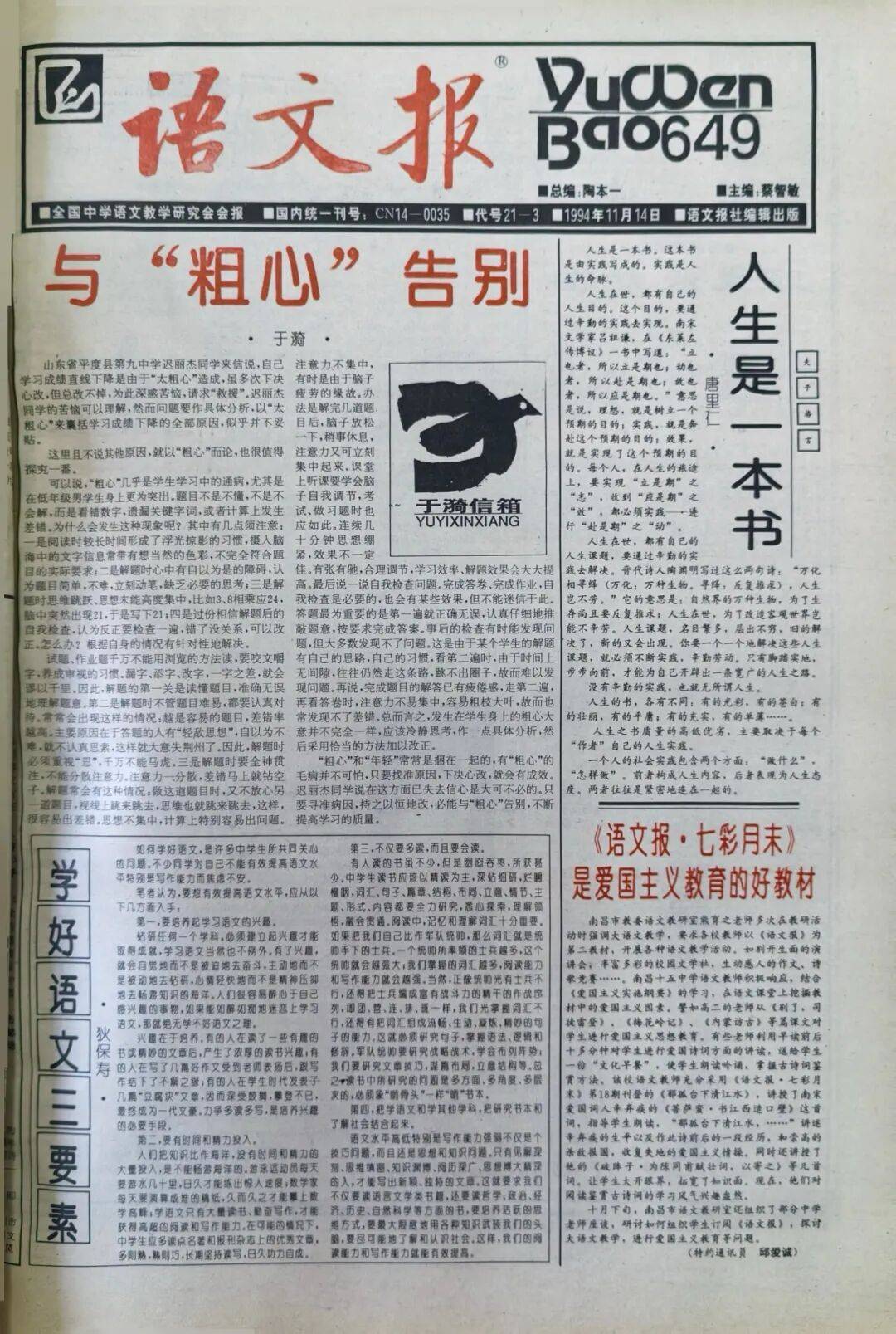于漪是新中国第一代语文特级教师,“人民教育家” 国家荣誉称号获得者,深耕基础教育七十余载,一生践行 “教文育人”,以语文课堂滋养一代又一代青少年成长。而1994年至1998年间刊登在《语文报》上的“于漪信箱”专栏,是她教育初心最生动的延伸。