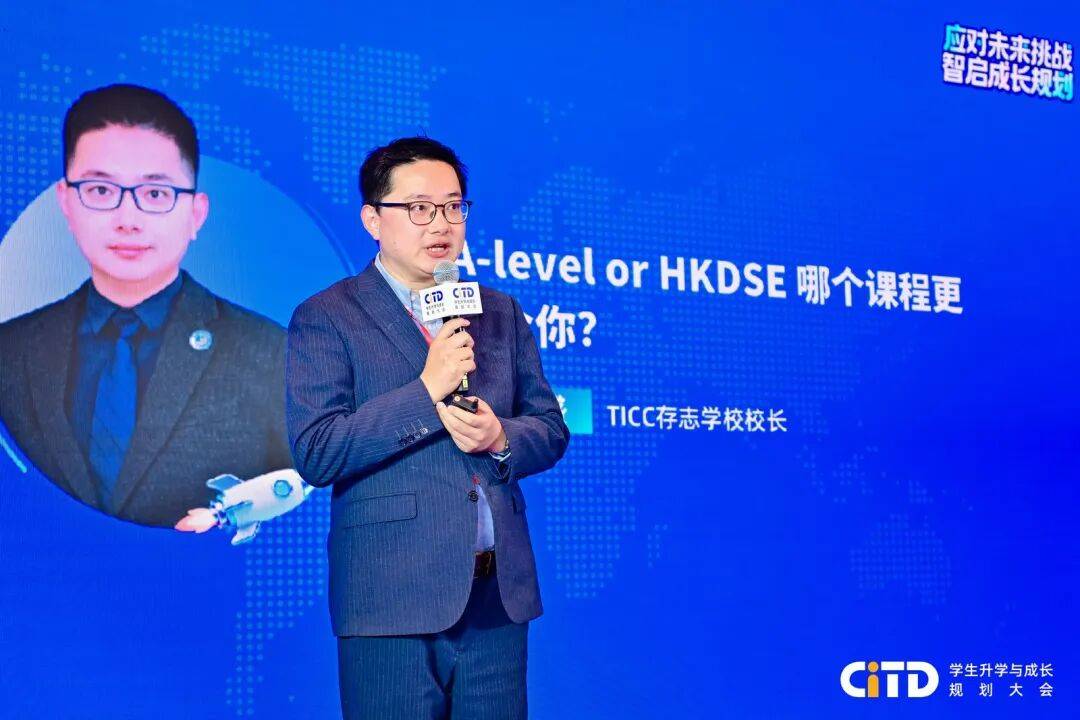 TICC存志学校校长钱昌盛,以《A-level or HKDSE,哪个课程更适合你?》为题发表演讲。他认为DSE与A-Level课程选择需以孩子特质为核心,而非盲目追求主流,并总结了两者在考试、科目、难度等方面的差异性。他提出,课程选择应结合学生学科平衡度、语言能力及升学目标,TICC提供双学籍、小班化教学等支持,助力学生找到最适合的升学路径。