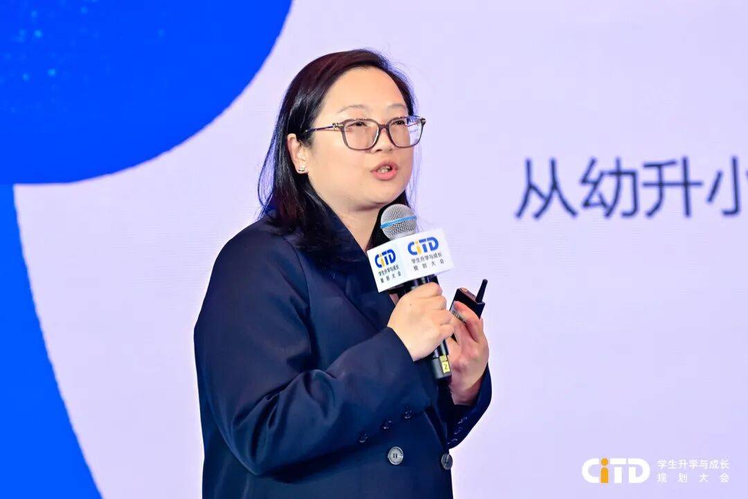 宝华曜ONE学校校长潘海圆,以《个性化教育如何点燃学术潜能》为题发表演讲。她分享道,“个人学校”的概念缘起于对传统标准化教育的革新,强调“个性化小班教育”模式。宝华曜ONE以个人学校通过3-8人小班、一人一课表、全程导师制及自适应数字系统,实现高效教学与低信息差沟通,让每个孩子看见真实的自己。