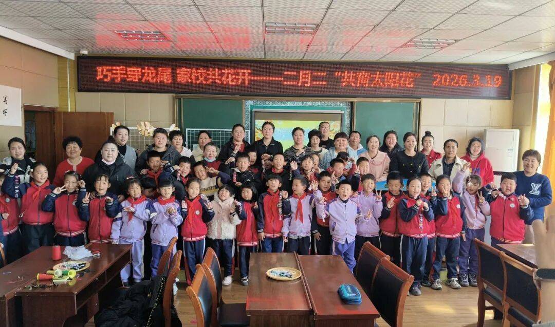 为深入贯彻落实立德树人根本任务,传承中华优秀传统文化,丰富“五色德育”课程体系内涵,深化家校协同育人机制,近日,双岛湾中心小学依托家庭教育工作室,精心策划开展“巧手穿龙尾 家校共成长”二月二“共育太阳花”家庭教育系列活动。活动以传统民俗为载体,将文化传承与家庭教育深度融合,切实提升家校共育实效,为学生成长赋能。