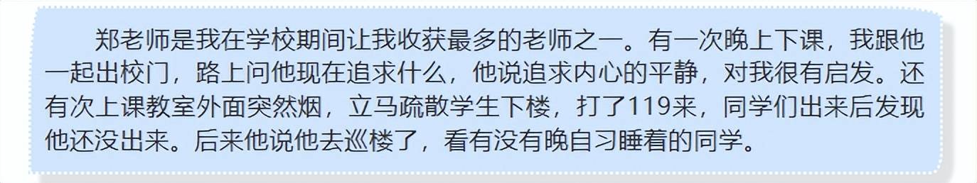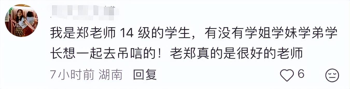 得知郑老师去世的消息后,学生们也都发声悼念,有学生说郑老师骑着二手自行车,私下非常节俭。有学生说郑老师会在家里给学生做饭、谈心,课堂上幽默风趣,博学多识,处处体现了对学生的关怀。