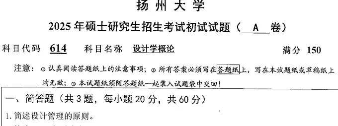 2023-2025年扬州大学614设计学概论考研真题试卷