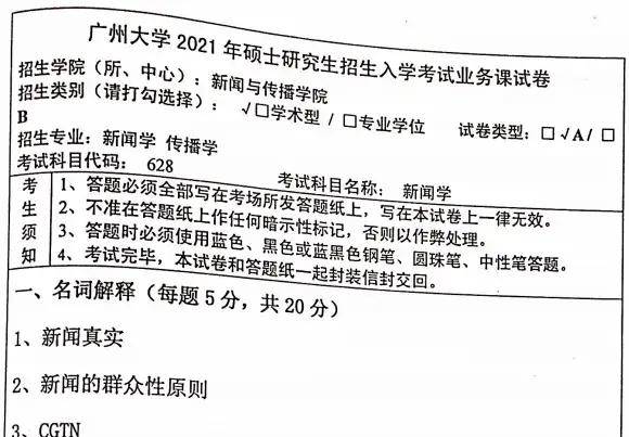 2025年广州大学628新闻理论与实务考研真题【回忆版,无答案】