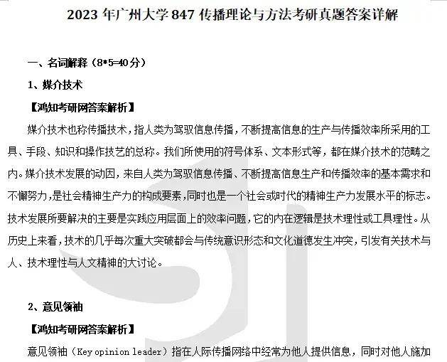2024年广州大学847传播理论与方法考研真题与答案详解