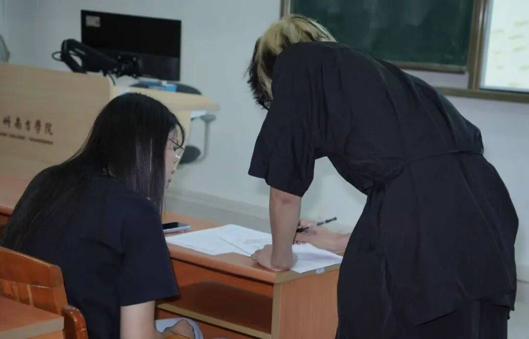 本次面试特邀大学英语教学中心多位资深教师组成评审团。老师们全程一对一坐镇考场,从发音标准度、语言流畅度、领读感染力等多个维度,对每一位考生进行全面、专业的打分与点评,既肯定同学们的亮点与优势,也针对性地提出提升建议,让每一位参与者都在面试中有所收获、有所成长。