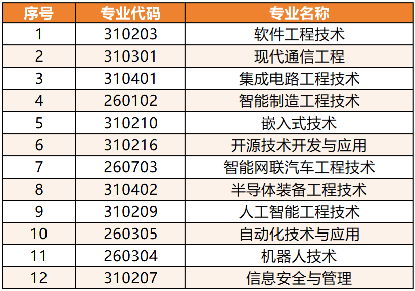 此前,深信官微发布新增开源技术开发与应用、智能网联汽车工程技术、半导体装备工程技术、人工智能工程技术、自动化技术与应用、机器人技术、信息安全与管理等7个本科专业,至此学校本科专业数量增至12个