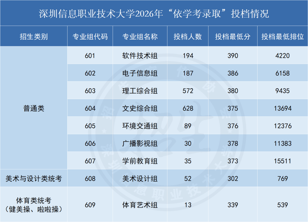 深信2026年学考普通类投档最低分为373分,最低排位15511。