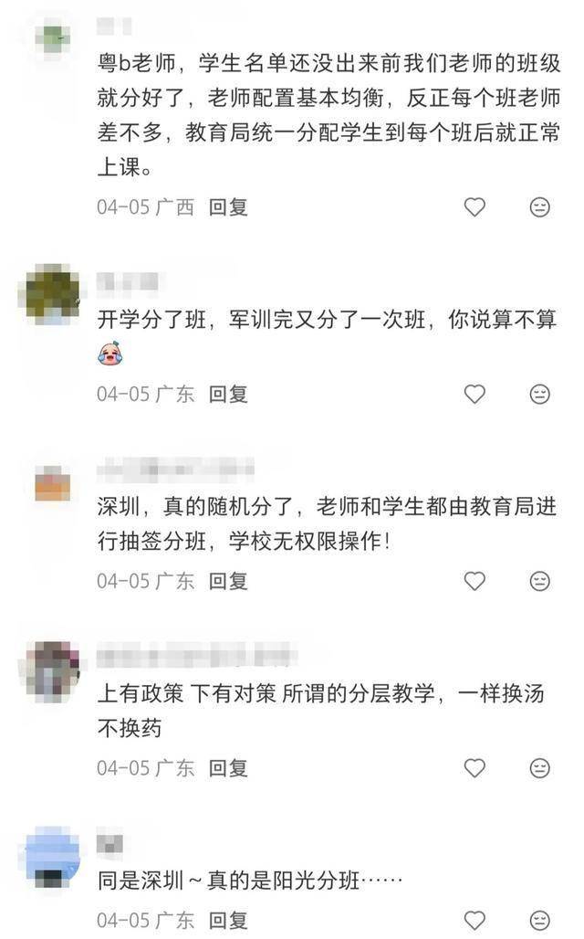 基本上,大家都回复说是真·阳光分班了。即便是本校的教师子弟,都一视同仁。