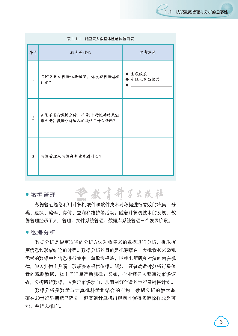 - **选择性必修3《数据管理与分析》**:通过多个项目引导学生认识数据资源价值,了解数据管理与分析流程、数据库建立以及数据安全等知识的教材。