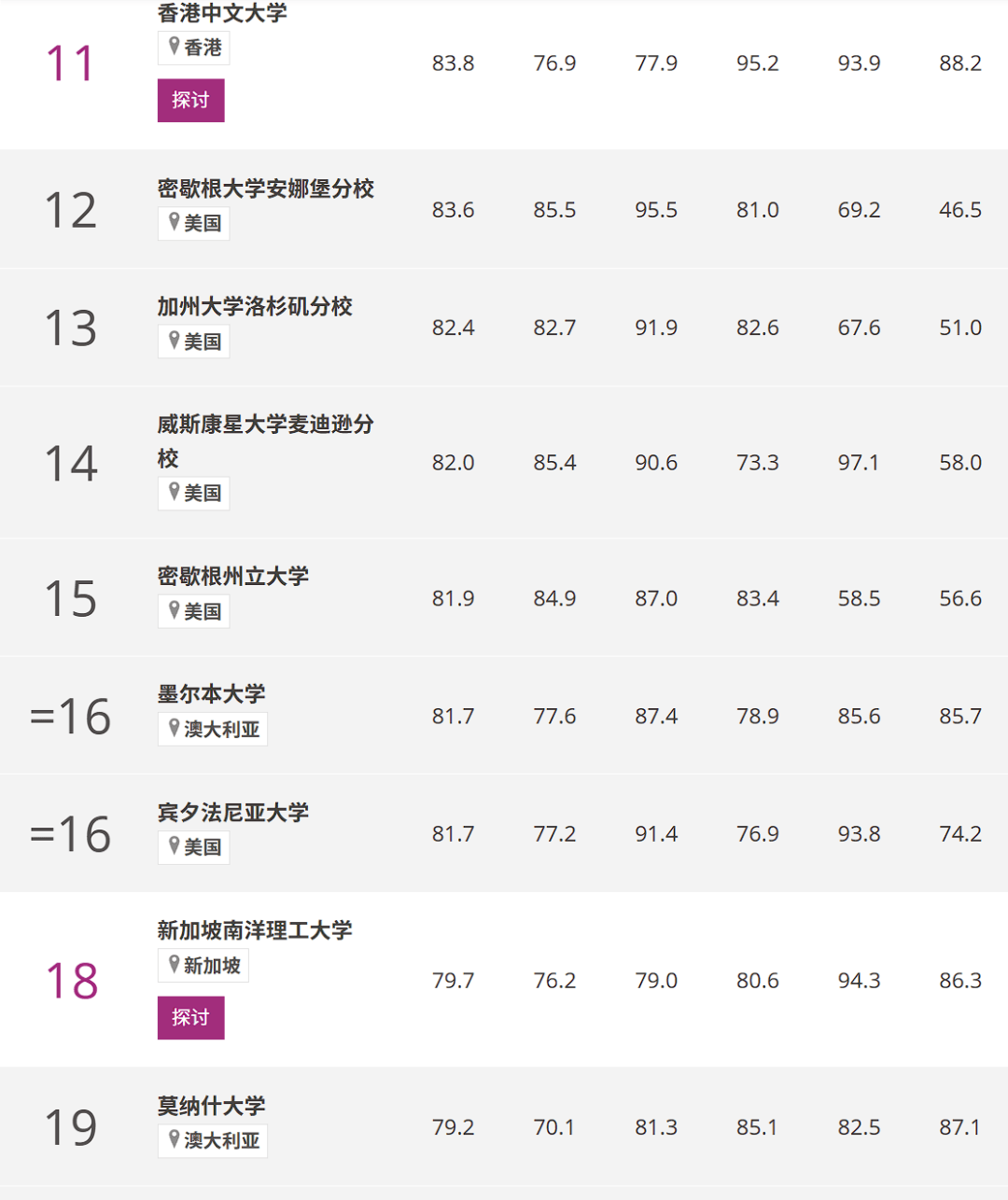 如果说世界大学排名是学校的综合影响力和竞争力之间的较量,那么学科排名则是学校学术专业方面的博弈。 如果大家更在意未来专业的发展,学科排名还是有一定的参考价值的。