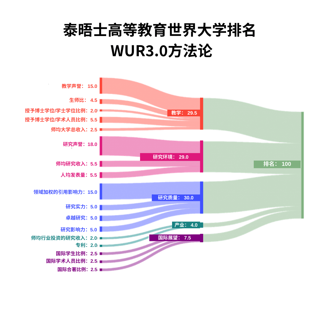 本次学科排名采用与此前相同的18项表现指标,并汇总了五个类别下的分数。