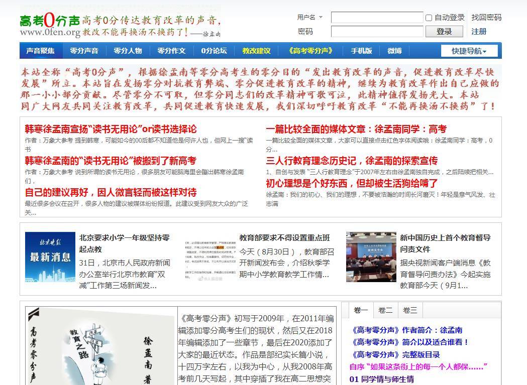 不甘心的徐孟南决定靠自己的力量,来推动自己的教育理念,于是他联系其他高考0分的考生,写下了这些人的故事,出版了一本《高考零分声》的书。