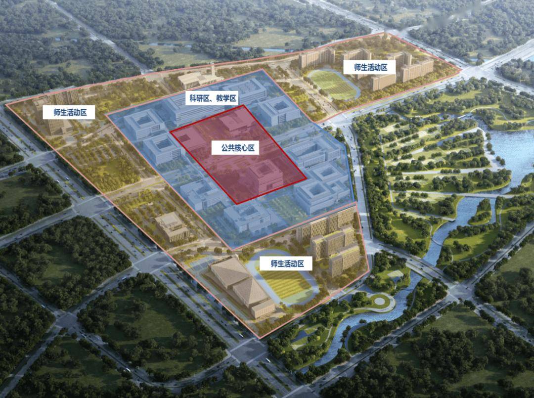 据了解,规划方案设计理念定位为聚焦教研结合、强化师生互动、突出学科融合的“未来医学院”,按“圈层空间模式”组织校园建筑与室内外空间,校园三个功能圈层由内向外分为中轴形象区、科研及教学区、生活及体育运动区。建筑单体及组团主要包括图书馆、科研组团、教学组团、学生宿舍和师生活动中心。