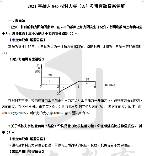 2020年扬州大学843材料力学考研真题试卷与答案详解