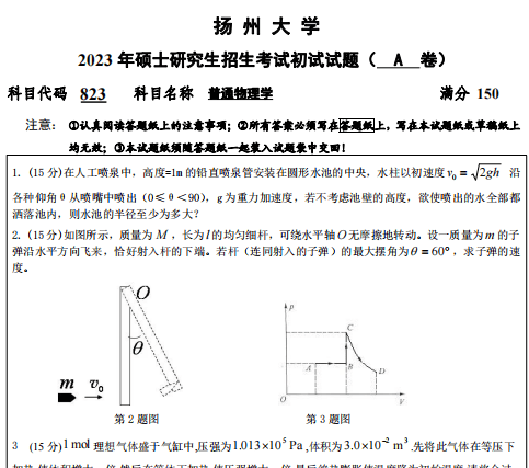 2014-2023年扬州大学823普通物理学考研真题答案详解