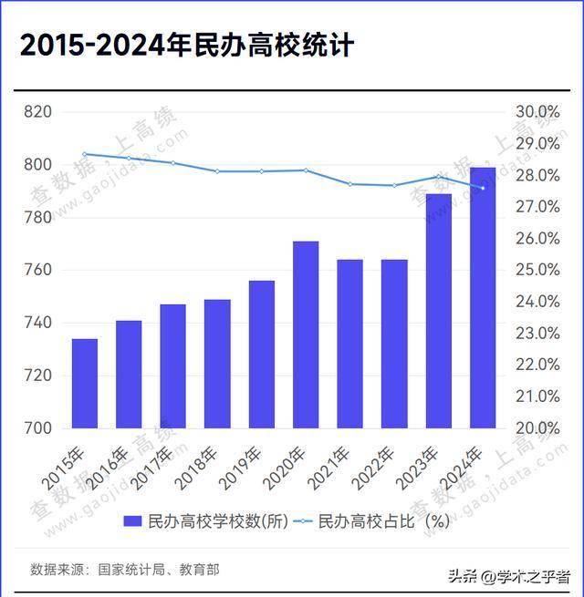 根据教育部2024年发布的《全国普通高等学校名单》,截至2024年6月,全国共有普通高校2895所,其中民办高校799所,占高校总数的约27.6%。