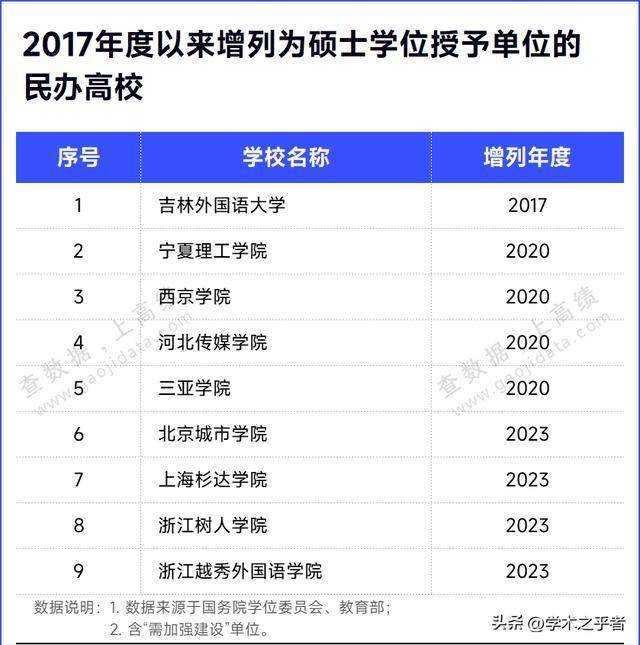 在2017年度学位授权审核增列中,吉林外国语大学成为首家获得硕士学位授予权的民办高校。此后,多所民办高校陆续获批硕士学位授予权。