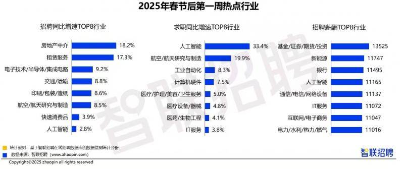 春节过后,春季招聘也拉开序幕。2月10日,智联招聘发布《2025年春招市场行业周报(第一期)》。调查显示,春招首周,供需两端快速升温,五大领域供需双旺。