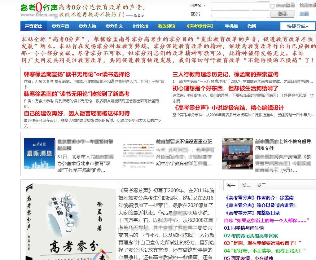 此时的徐孟南随即又想到了网络的力量,办起了自己的“高考零分声”网站。