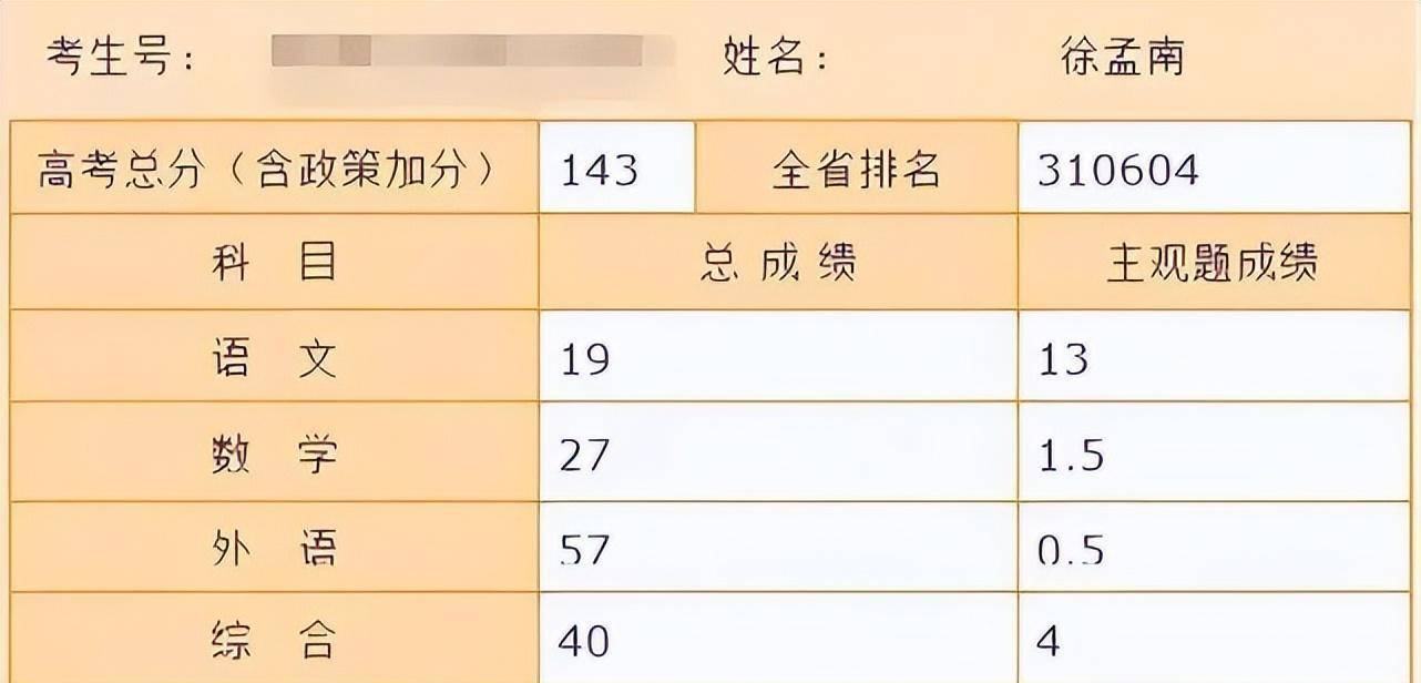 拿到这个成绩的徐孟南只觉得心绪难平,成绩出来前的他已经联系各大媒体来采访自己这个“零分考生”。