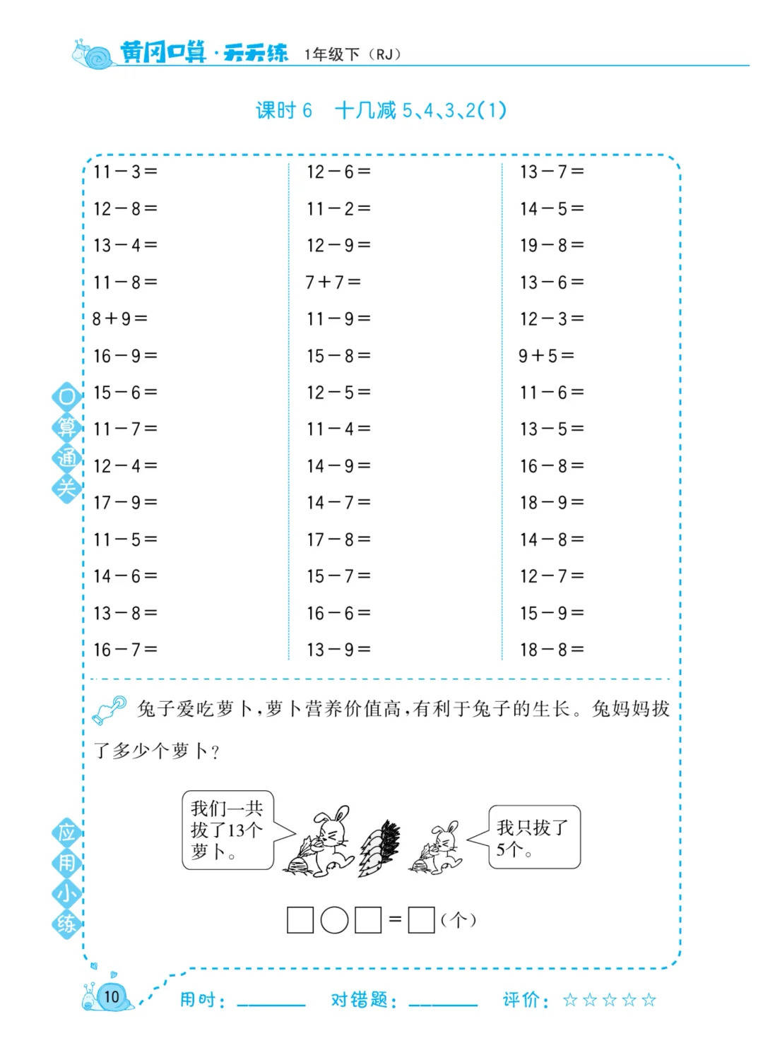 发现问题:学生通过每日练习,能及时发现自己在 20 以内退位减法和相关运算中的薄弱环节,如对某类退位减法计算不熟练,或在解决实际问题时思路不清晰等,从而有针对性地进行强化训练 。