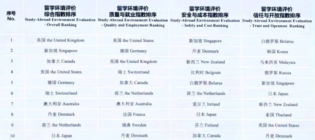 而《蓝皮书》的“留学国别环境指数”,更是从质量与就业、安全与成本、信任与合作三个维度,25个二级指标,对全球主要留学目的地进行全方位的综合评估。