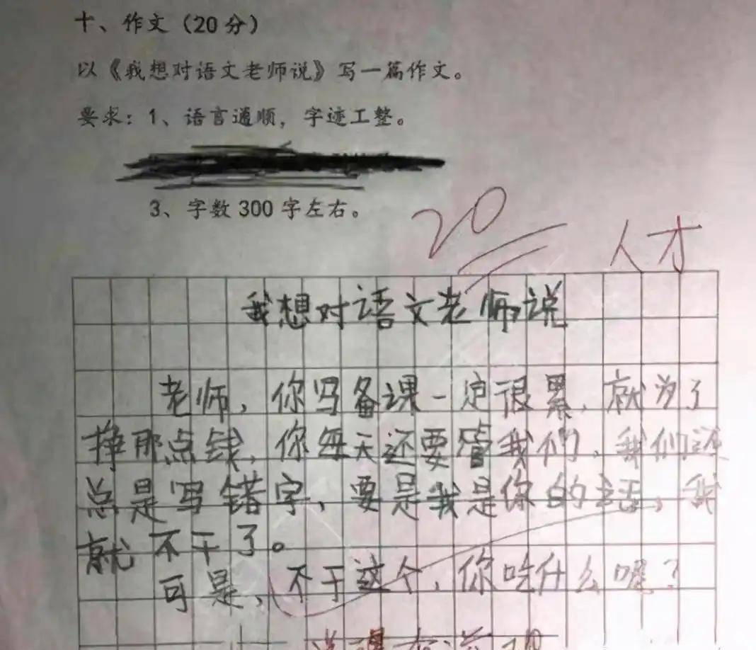 小学生们的想法总是让人捉摸不透,他们的作文有时候让人哭笑不得,有时候又让人佩服得五体投地。