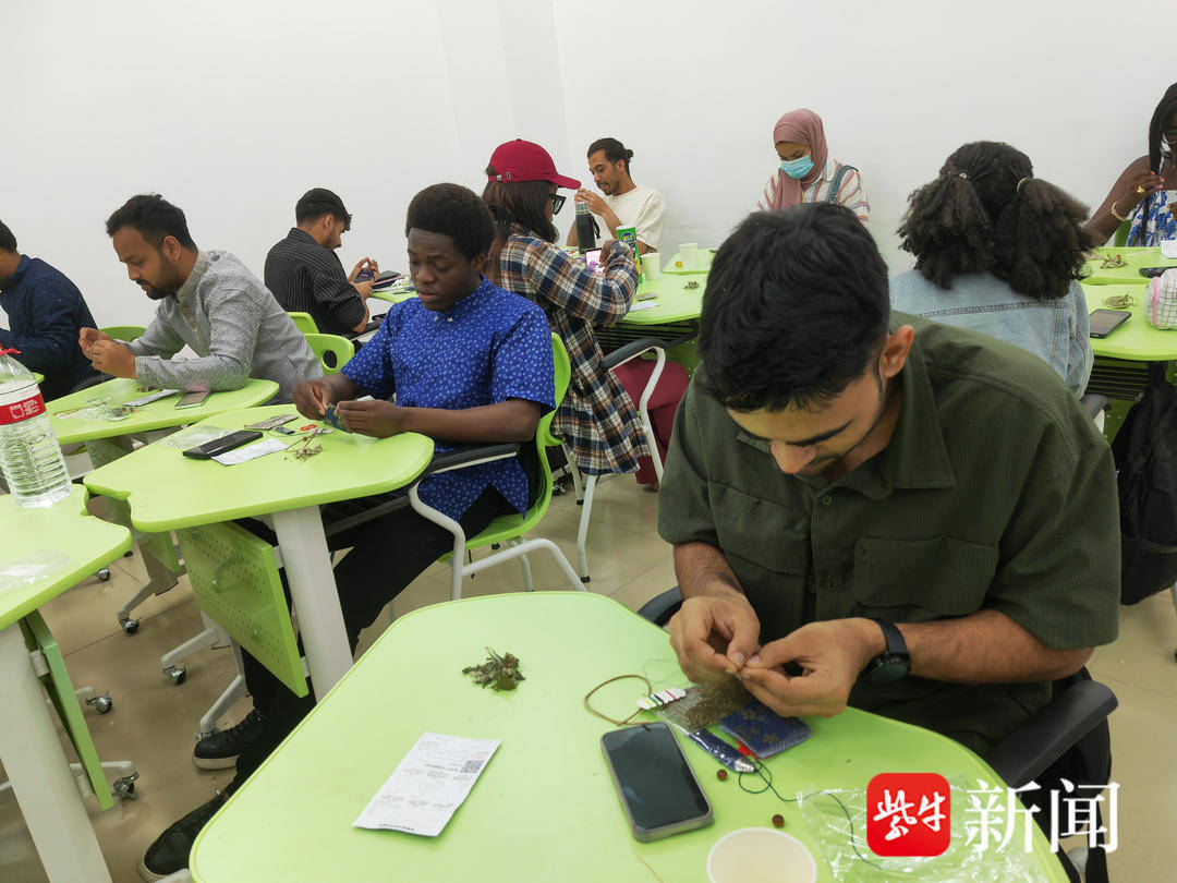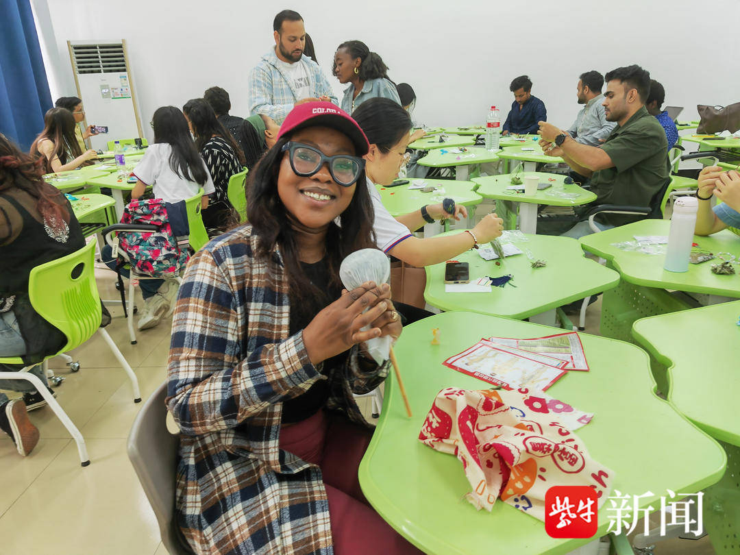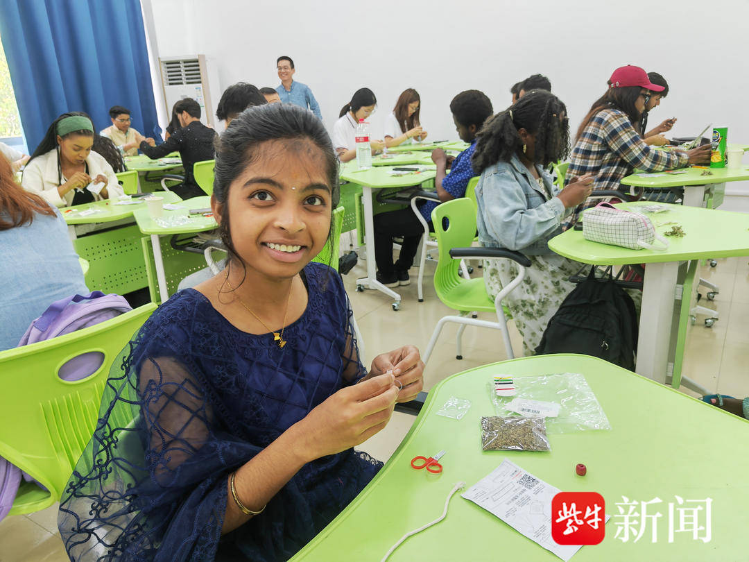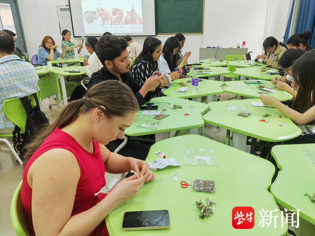 随后,语言文化中心和知识产权学院的老师带领中外学生体验趣味十足的端午香囊和艾草养生锤制作。在此过程中,同学们不仅亲身体验了端午非遗传统文化的魅力,也进一步加深了对推动中华优秀传统文化创造性转化、创新性发展的理解。