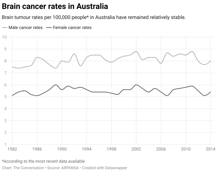 澳大利亚脑癌发病率保持相对稳定。图片来源:The Conversation