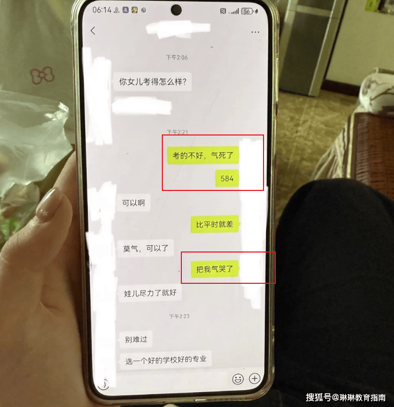 这位女孩平时成绩在550分左右,此次高考她超水平发挥,达到了584分。对她而言,这是一个值得庆祝的重大突破。可在看到这些聊天记录后,女孩彻底心碎了,她不明白为什么自己已经超常发挥,却依然得不到母亲的认可和肯定。