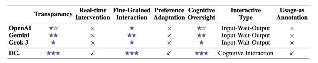 为了衡量 “交互” 本身所带来的价值,研究进行了一项关键的消融实验:将具备完整功能的 “深度认知”(Deep Cognition,DC)系统与一个移除了交互模块、只能以 “输入 - 等待 - 输出” 模式运行的版本(DC non-interaction)进行对比。结果是惊人的,如下表所示,交互的引入带来了全方位的、巨大的质量提升 [1]。