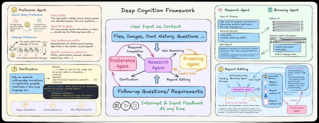 1. 研究智能体(Research Agent)研究智能体作为系统的核心大脑,能够接收多模态输入并采用 "交替思考 - 行动" 的先进方法进行深度推理,集成了 o1、DeepSeek-R1、Claude Sonnet 4 等最先进的推理模型,确保研究过程的严谨性和前沿性。