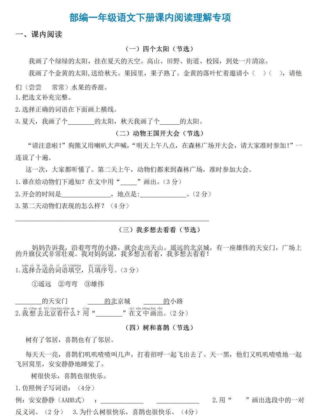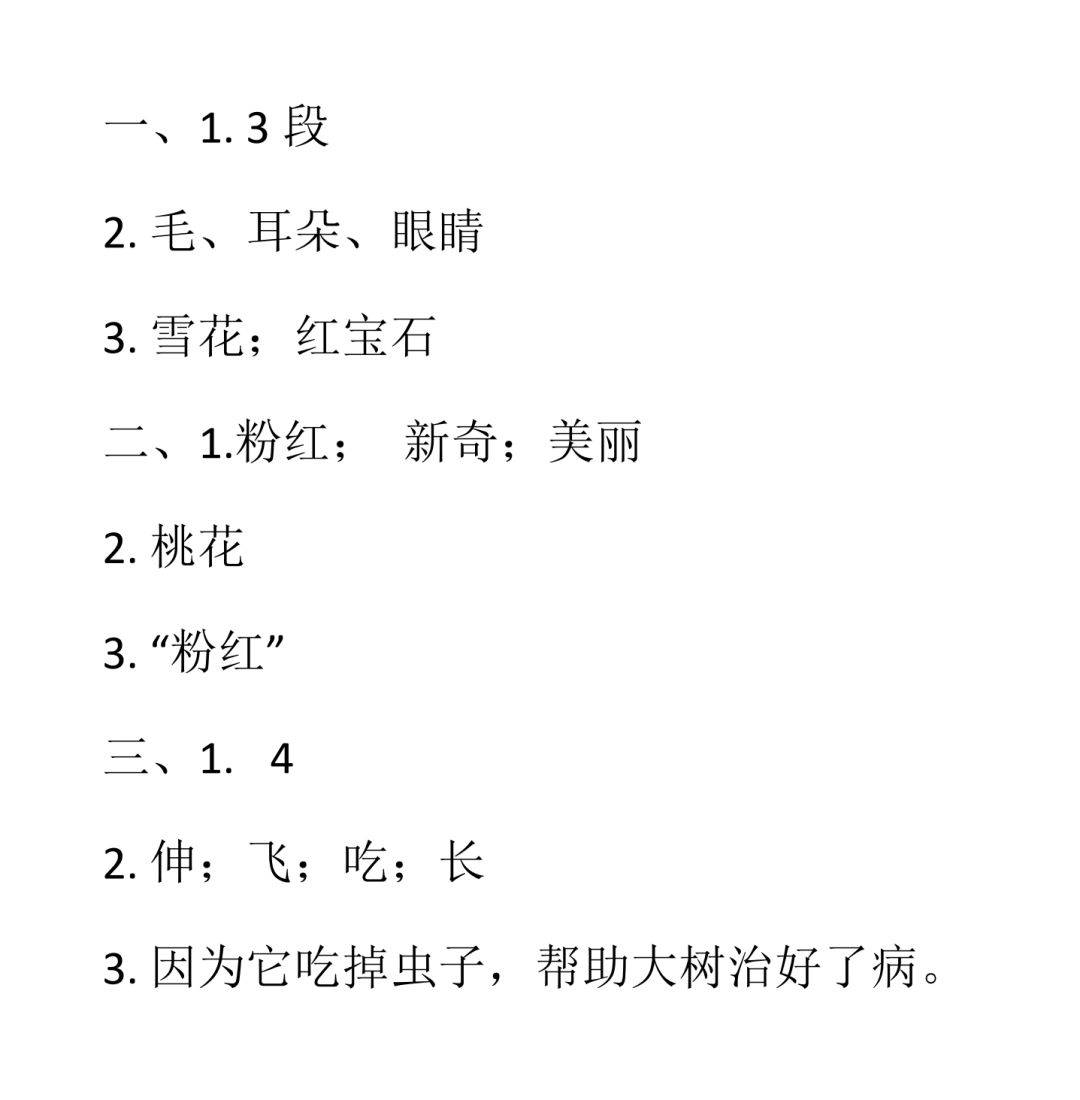 b、春天的树上,芽瓣是 ( ) ;夏天的树上,叶片是( ) ;秋天的树叶颜色有( ) 和( ) ;冬天的树下,满地是( ) 。
