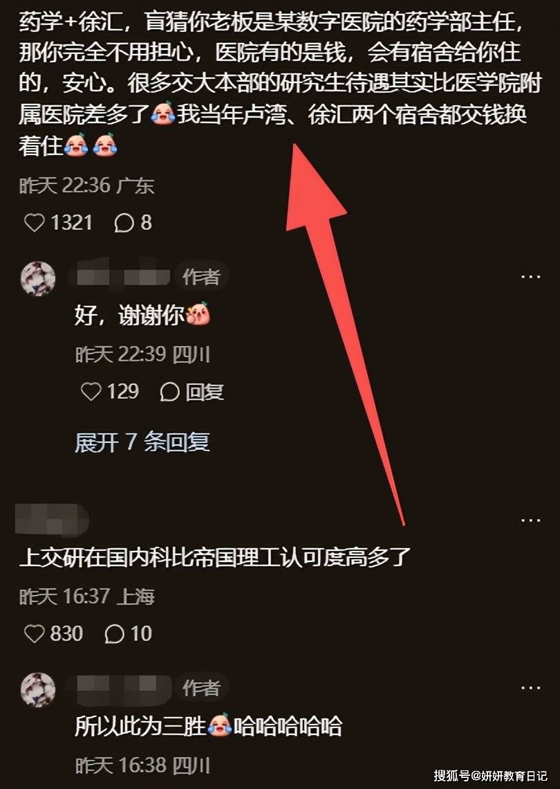 就在这个时候更有人给了这位同学一个惊喜,就是他好好学习的福报来了,因为他是药学的履历加上在徐汇区的背景,盲猜他的老师应该是某数字医院的药学部主任。