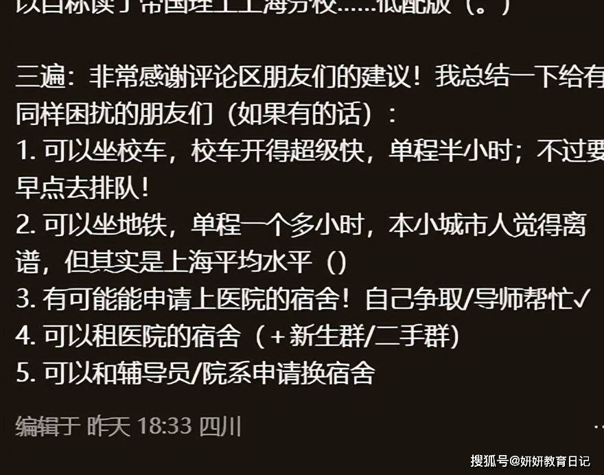 而他的导师却是医生。里面的也就是附属的某某医院的一位老师。所以他现在要面临的困境就是他的宿舍肯定在闵行区。