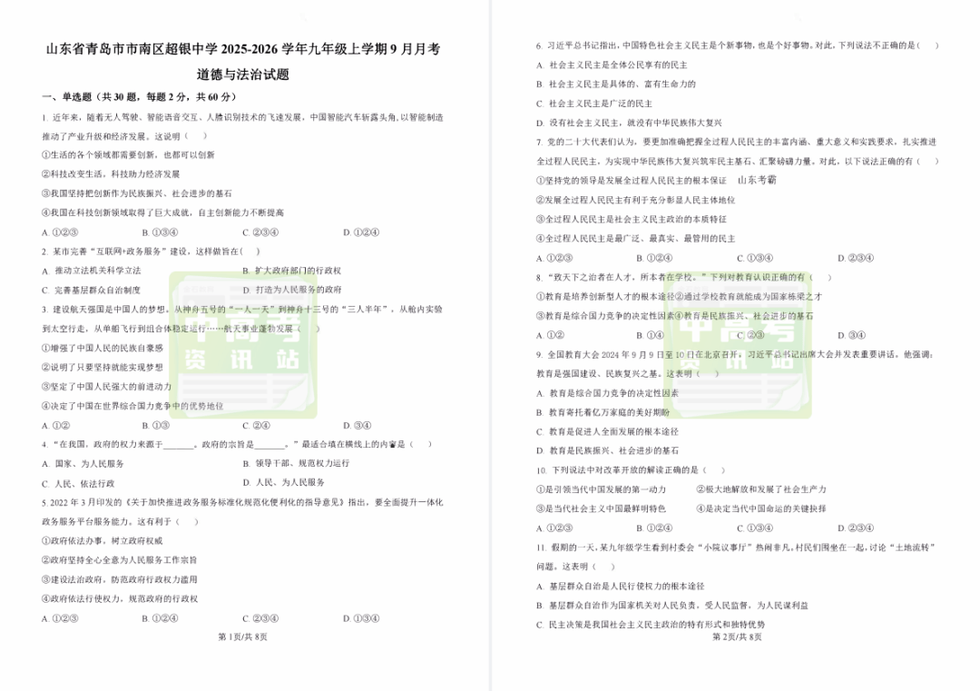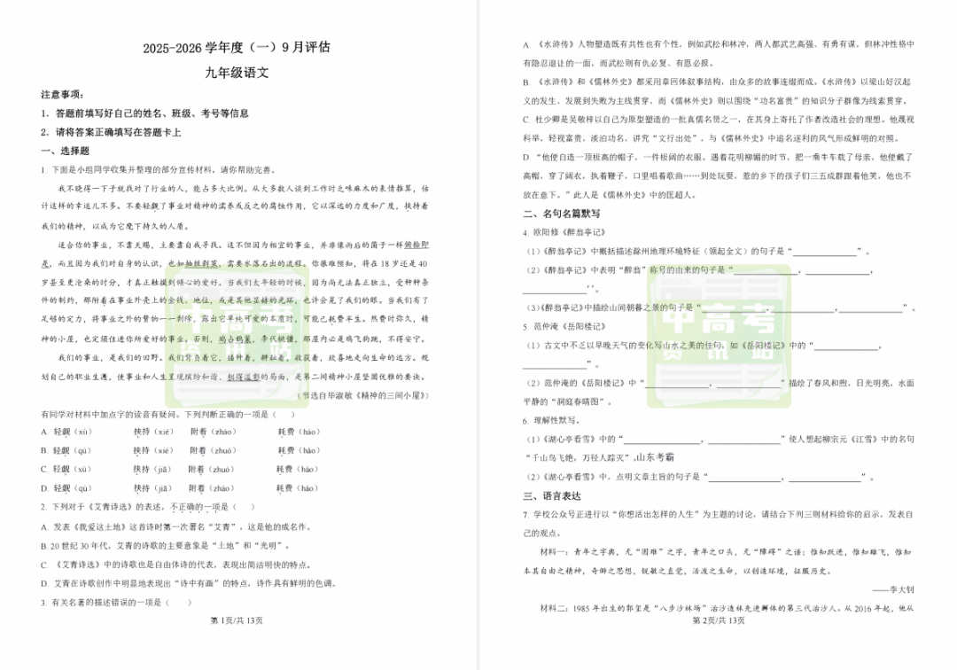 为了让孩子在假期高效备考,小金老师整理了已经考过的 部分学校初三的月考真题及答案,帮孩子摸清出题逻辑,也能查漏补缺找准薄弱点,让孩子趁假期抓紧时间打印练习!