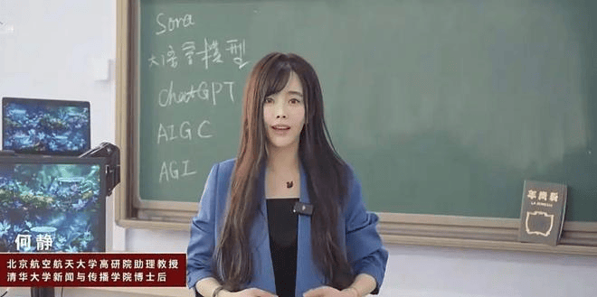在一段何静的授课视频中,镜头里的她妆容精致、气质灵动,笑起来带着几分学生气,若不是身后“人工智能导论”的课件投影,很难让人将她与“北航副教授”这个头衔联系起来。